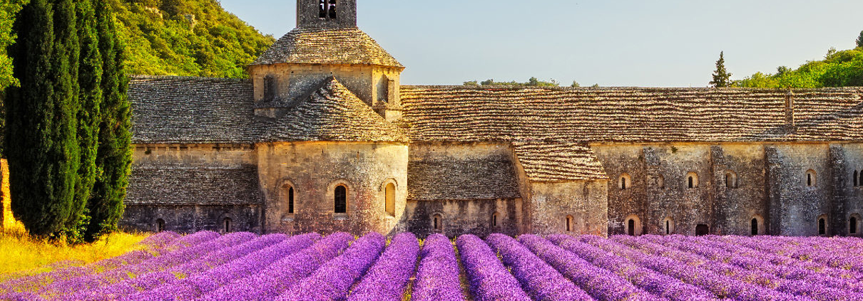 - Luberon – Aby podziwiać najpiękniejsze lawendowe pola Prowansji, można również odwiedzić Luberon. Opactwo Senanque, w pobliżu uroczego miasteczka Gordes, znajduje się w środku lawendowego pola, to stąd pochodzi słynne zdjęcie przedstawiające opactwo pośród kwitnącej lawendy. Uwaga: ważna informacja w 2019 i 2020 roku nie ma możliwości zrobienia tego słynnego pocztówkowego zdjęcia, pole lawendy zostało zmienione i sadzonki, są jeszcze bardzo małe.